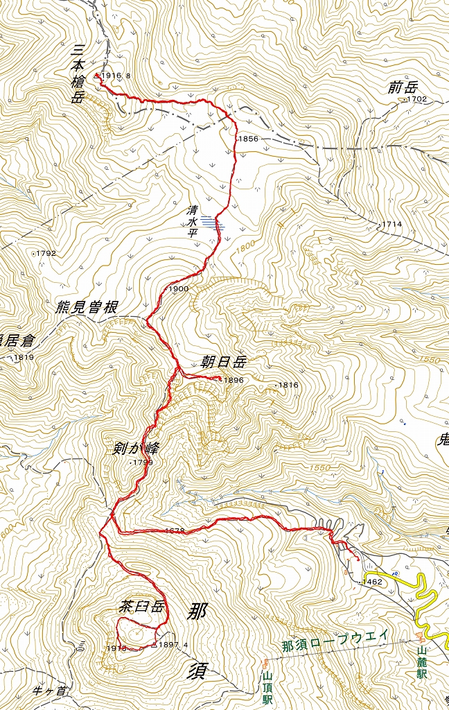 帰路は登ってきたルートを辿って駐車場に戻った。 長年、登るタイミングを見計らっていた那須岳は、あいにくの天候の中での山行となってしまった。しかし、ふたたび訪れることはないだろうと思う。 07:49峰の茶屋駐車場--(.49)--08:38峰の茶屋(避難小屋)08:46--(.36)--09:22茶臼岳09:36--(.31)--10:07峰の茶屋--(.45)--10:52朝日の肩--(.08)--11:00朝日岳11:21--(.37)--11:58清水平--(.40)--12:38三本槍岳13:03--(1.04)--14:12朝日の肩--(.32)--14:44峰の茶屋14:57--(.30)-- 15:27駐車 群馬山岳移動通信/2025 |